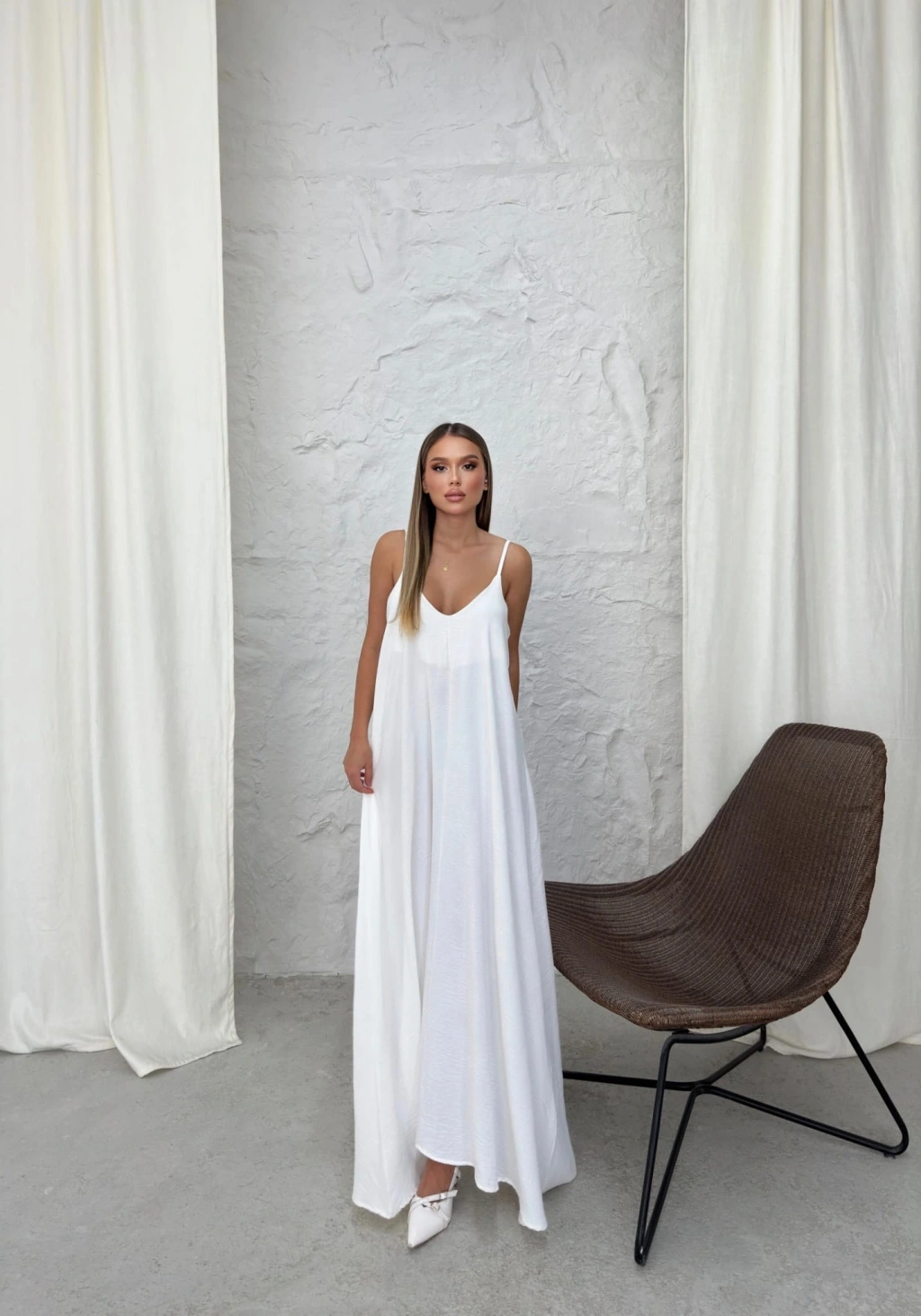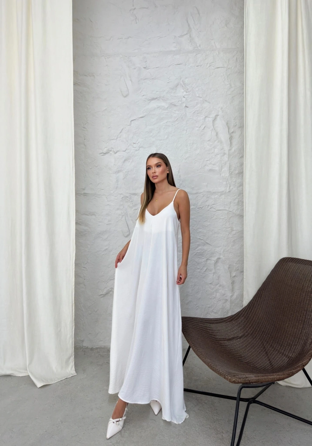 Aerobin markasının şık tasarımıyla öne çıkan uzun elbise saks beyaz rengiyle göz kamaştırıyor. Hem zarif hem de rahat kesimiyle günün her saati şıklık ve konfor sunuyor.