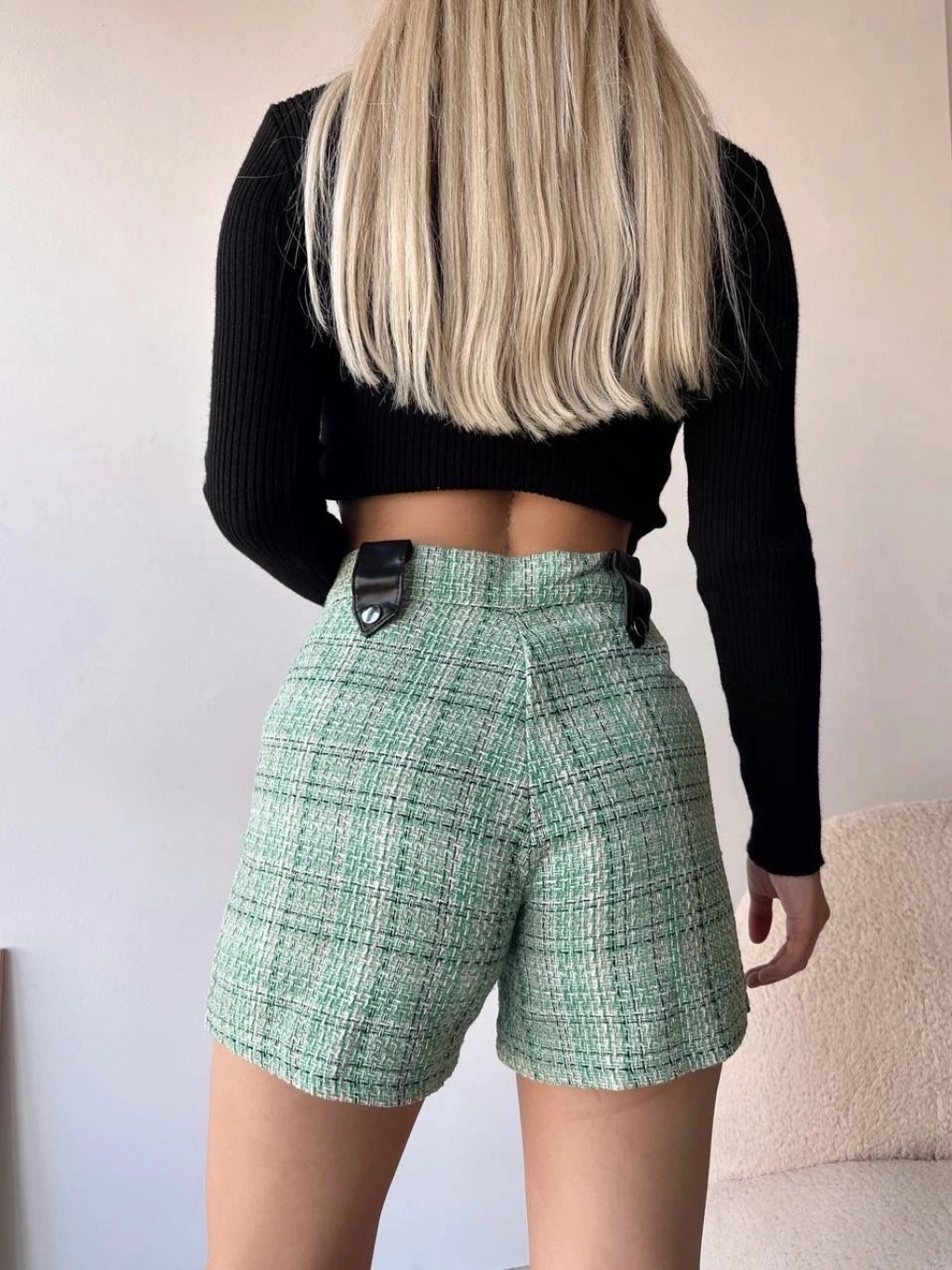 Çıtçıtlı siyah köprü tüvit şort yeşil
