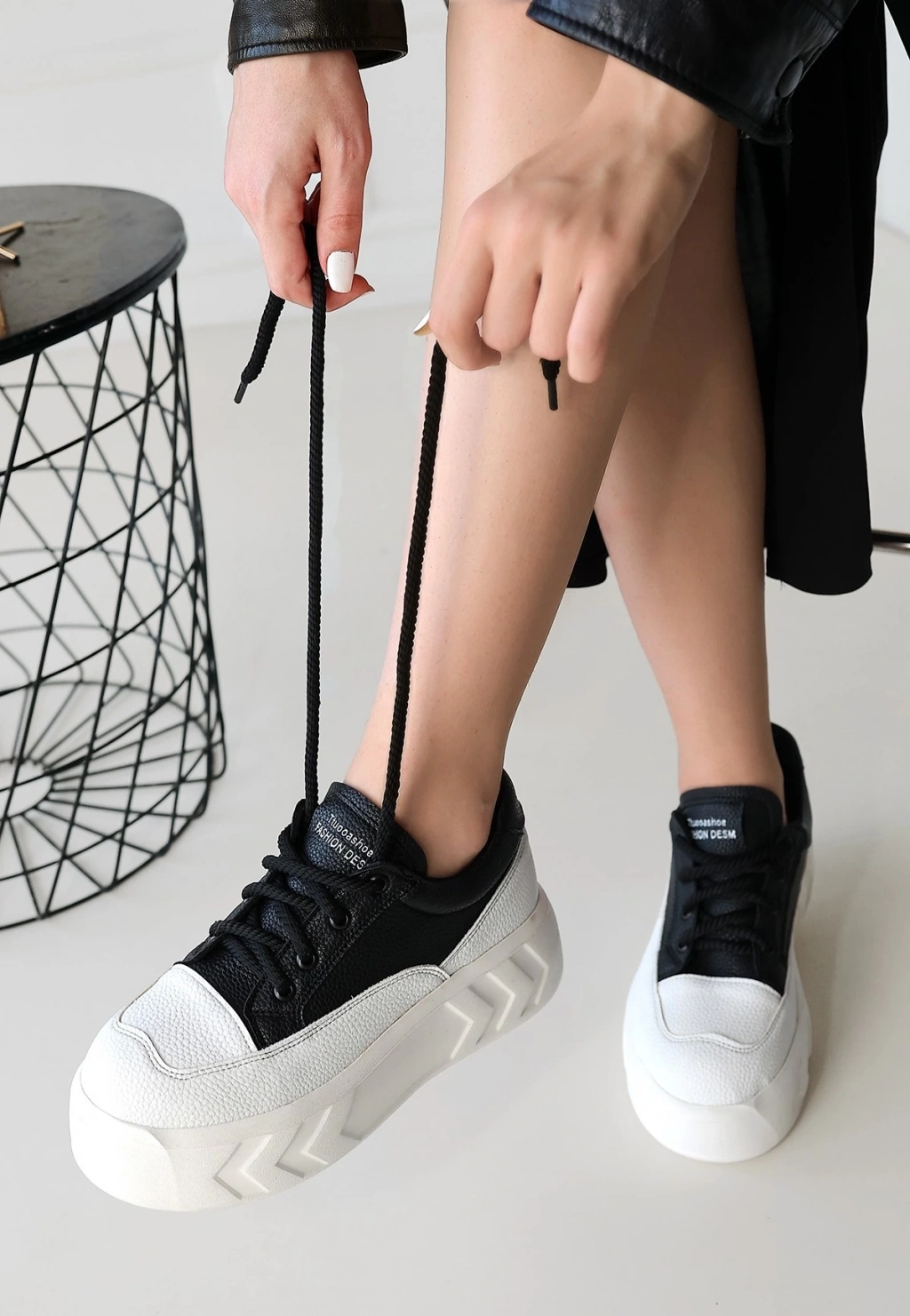 • Emwa Siyah Cilt Bağcıklı Spor Ayakkabı