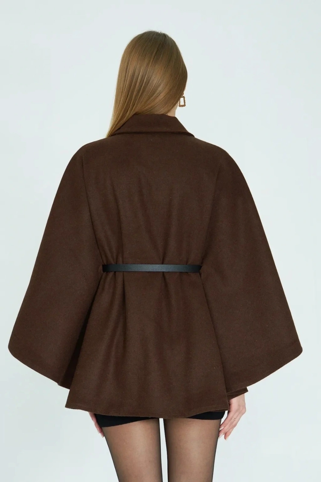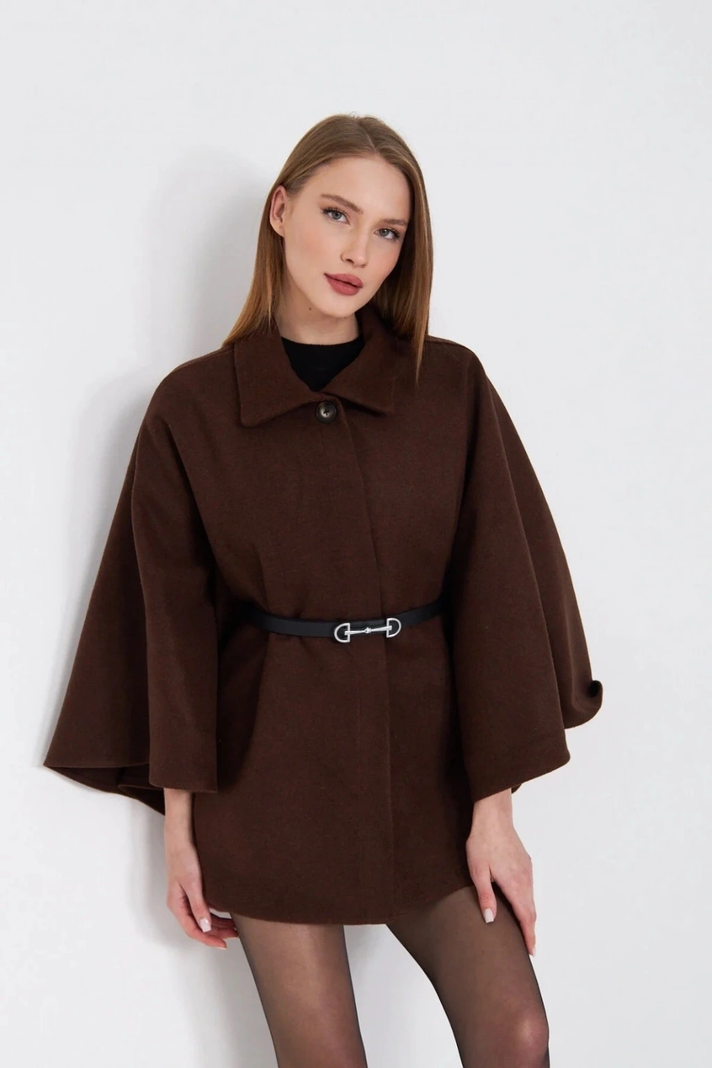 • Kemerli kaşe panço kahve pt