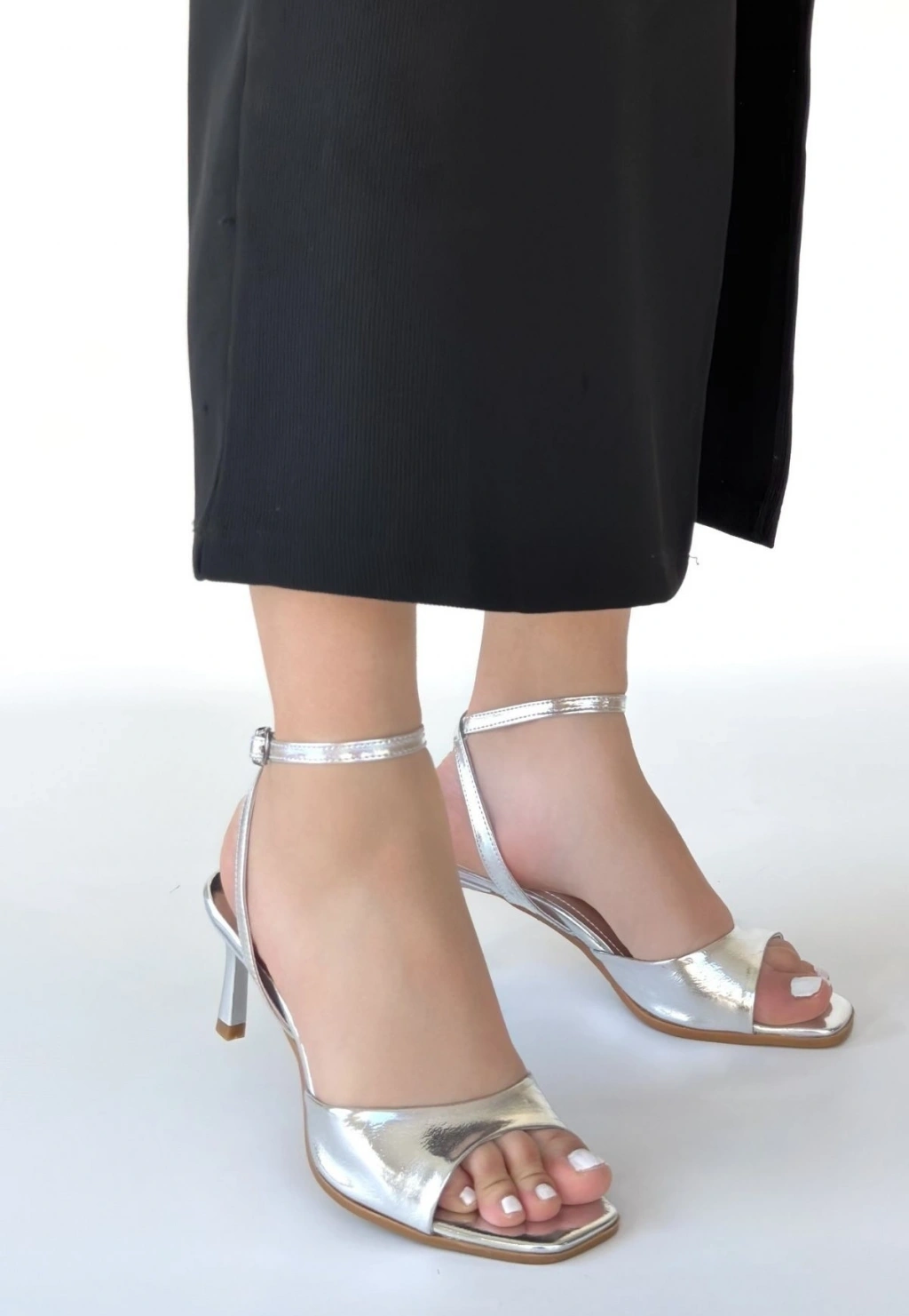 • Lenya Gümüş Rugan Topuklu Ayakkabı