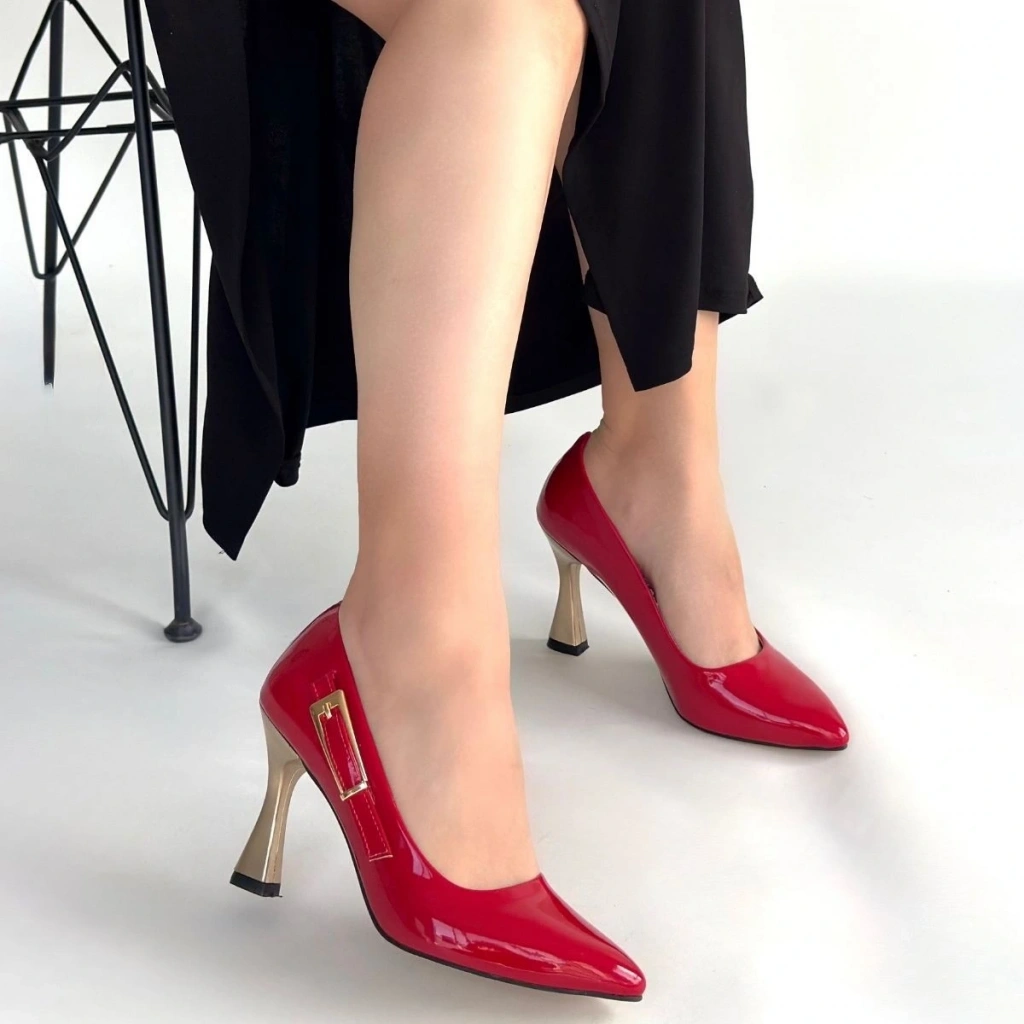 • Motya Kırmızı Rugan Topuklu Ayakkabı