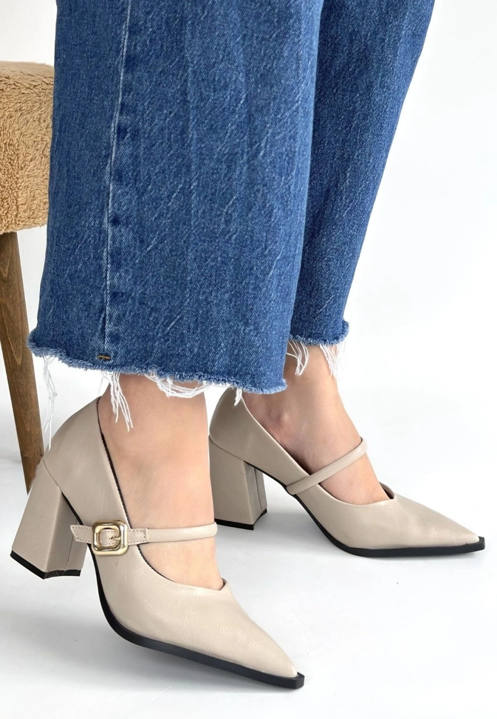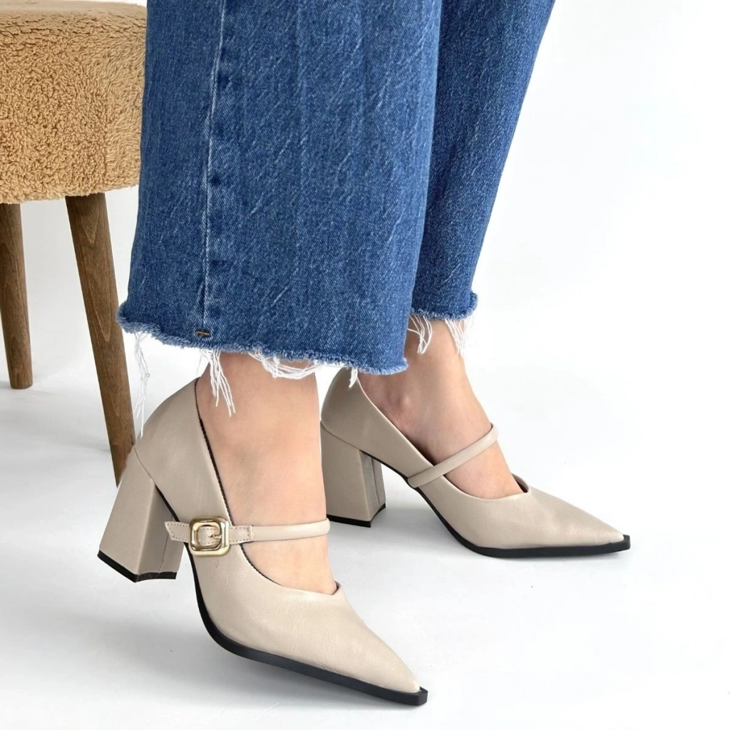 • Nıvra Bej Cilt Topuklu Ayakkabı