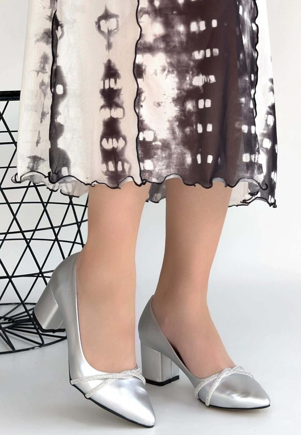• Rewin Gümüş Cilt Topuklu Ayakkabı