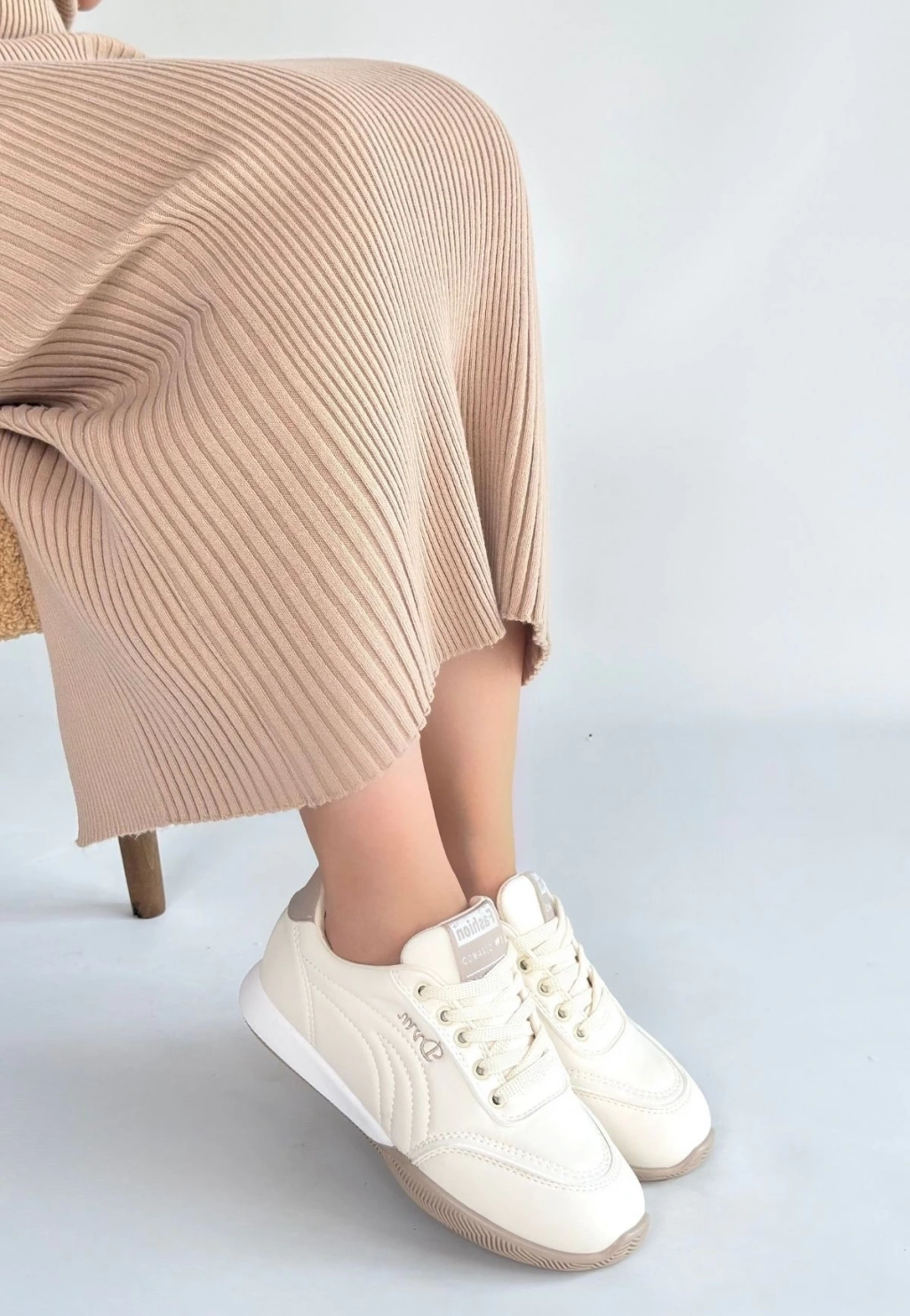 Tawen Bej Cilt Bağcıklı Spor Ayakkabı