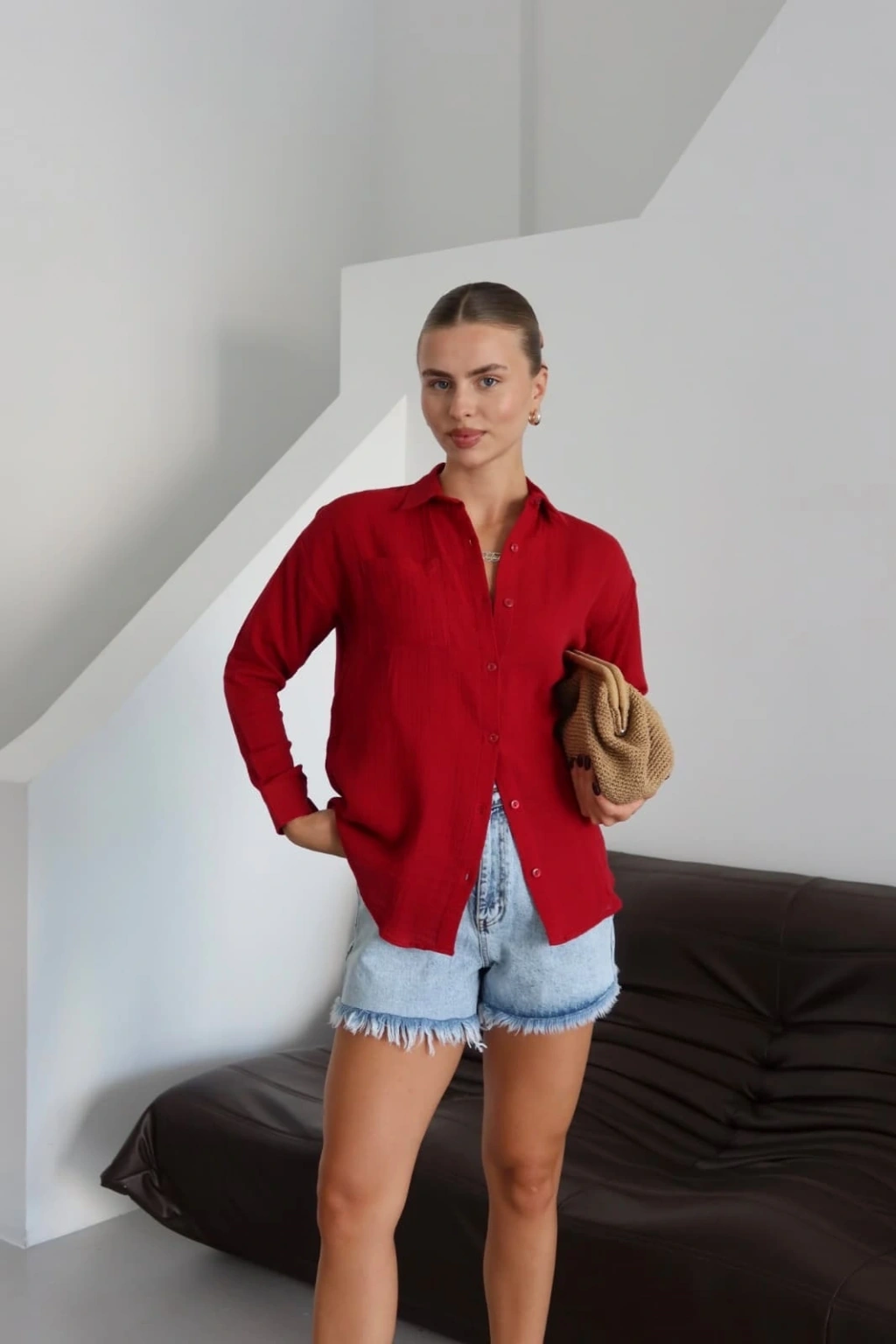 Şıklığı seven kadınların tercihi olan Tek Cep Müslin Gömlek, günlük kullanımdan özel davetlere kadar geniş bir kullanım alanı sunar.