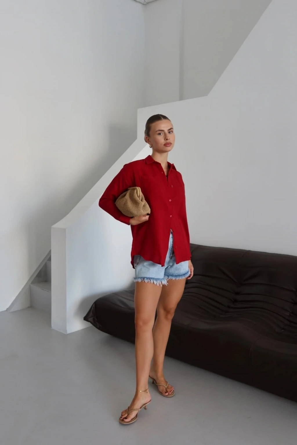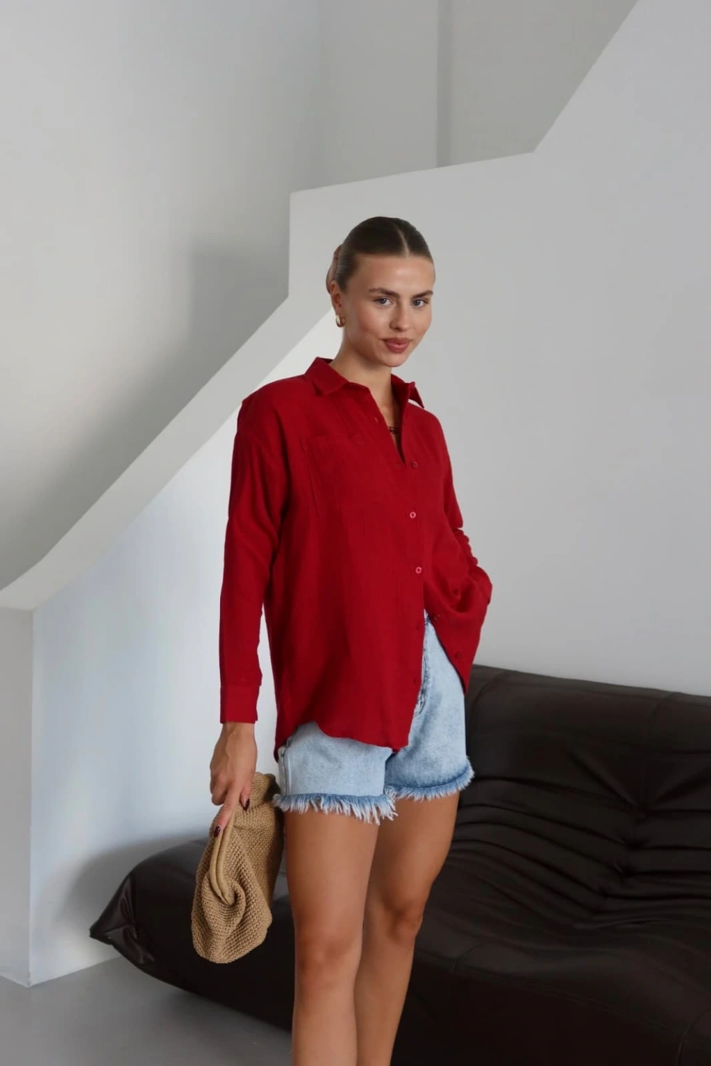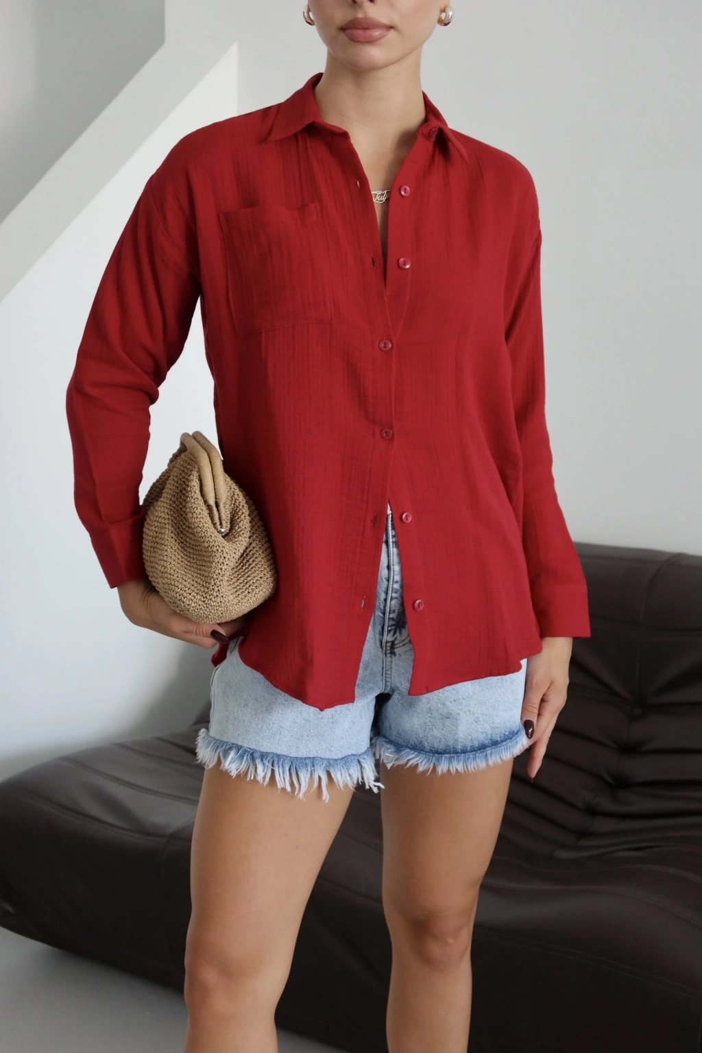 Tek cepli müslin gömlek bordo pt