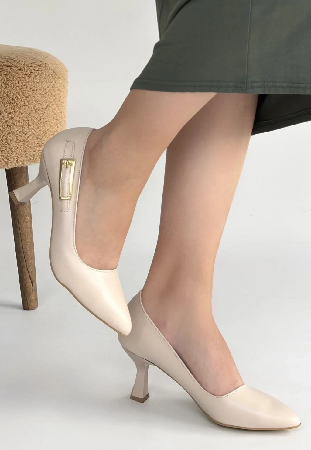• Yons Bej Cilt Topuklu Ayakkabı